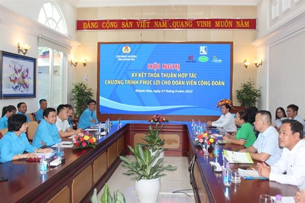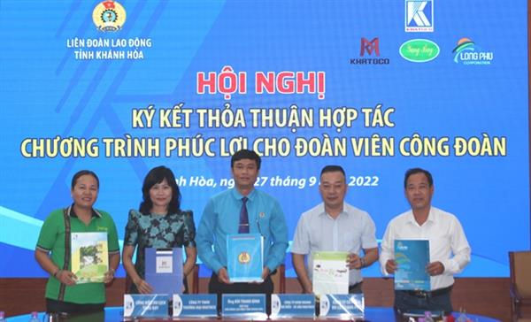 Sáng 27/9, Liên đoàn Lao động tỉnh tổ chức hội nghị ký kết thỏa thuận hợp tác chương trình phúc lợi cho đoàn viên công đoàn với 4 công ty thuộc Tổng Công ty Khánh Việt gồm: Công ty Kinh doanh Đà điểu – Cá sấu Khatoco, Công ty Cổ phần Du lịch Long Phú, Công viên Du lịch Yang Bay, Công ty TNHH Thương mại Khatoco.
