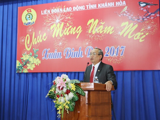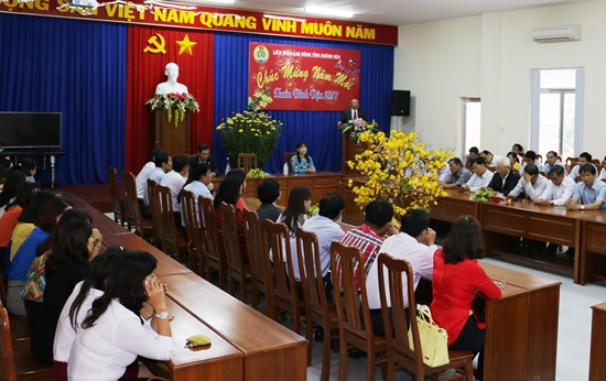 Thay mặt Ban Thường vụ LĐLĐ tỉnh đồng chí Nguyễn Hòa – UVBCH Tổng LĐLĐVN, Tỉnh ủy viên, Chủ tịch LĐLĐ tỉnh đã gửi đến toàn thể CBCNVC trong hệ thống CĐ lời chúc năm mới. Năm 2016, các cấp CĐ đã nỗ lực phấn đấu hoàn thành các mục tiêu nhiệm vụ đề ra. Đặc biệt ngay trong những ngày đầu năm 2017, toàn hệ thống đã thực hiện thành công chương trình "Tết sum vầy 2017" với hơn 1.000 suất quà đã được trao tặng cho người lao động có hoàn cảnh khó khăn, bị thiệt hại nặng nề bởi thiên tai trong năm 2016.