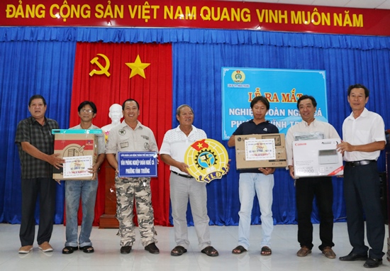 Nguyễn Hữu Danh trao thiết bị văn phòng cho BCH lâm thời nghiệp đoàn