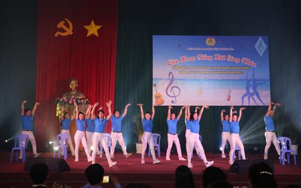 Với chủ đề ca ngợi Đảng, Bác Hồ kính yêu, ca ngợi tình yêu quê hương đất nước, biển đảo, về giai cấp công nhân và tổ chức Công đoàn, các đơn vị đã trình diễn những tiết mục đặc sắc, ấn tượng điển hình: Tiết mục mở màn đêm Liên hoan “Liên khúc nhớ ơn Hồ Chí Minh” – “Đảng đã cho ta một mùa xuân” – “Ngôi sao niềm tin ngôi sao Hồ Chí Minh” do CĐ Tổng Công ty Khánh Việt biểu diễn, “Việt Nam ơi” của CĐVC tỉnh, “Những người con của biển” do LĐLĐ TP. Nha Trang trình diễn và công diễn các tác phẩm đạt giải cao của Cuộc thi “Nhịp điệu công nhân, viên chức, lao động Khánh Hòa năm 2022” đã mang lại ấn tượng sâu sắc, trong lòng người xem.