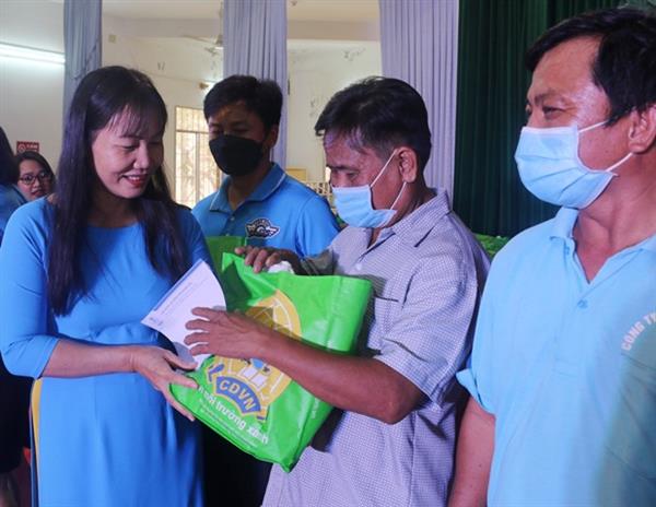 Đ/c Nguyễn Thị Hằng - Phó Chủ tịch Thường trực LĐLĐ tỉnh trao hỗ trợ cho đoàn viên