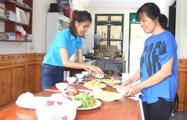 Thí sinh Trịnh Vũ Minh Hiền cùng bà mẹ Làng trẻ em SOS Nha Trang chuẩn bị bữa cơm cho trẻ