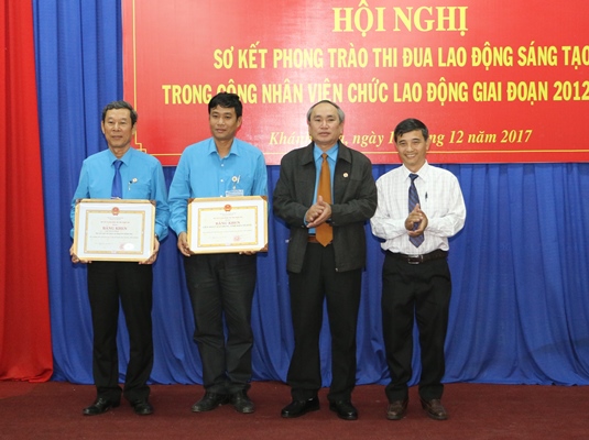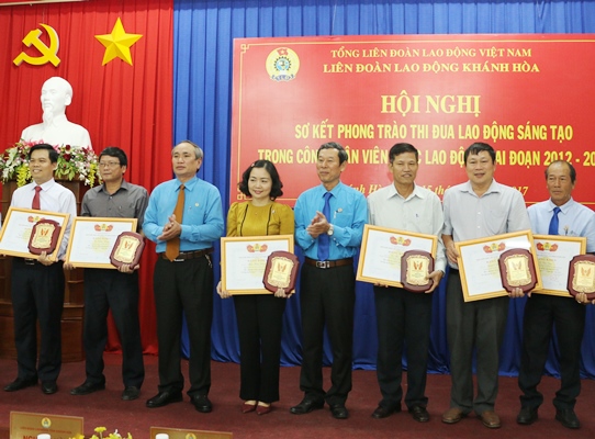 Tại Hội nghị, LĐLĐ Khánh Hòa đã tặng bằng khen cho 13 tập thể, 11 cá nhân có thành tích xuất sắc; trao bằng khen của Tổng LĐLĐ Việt Nam cho 3 cá nhân; trao bằng khen của UBND tỉnh cho 4 tập thể và 5 cá nhân.