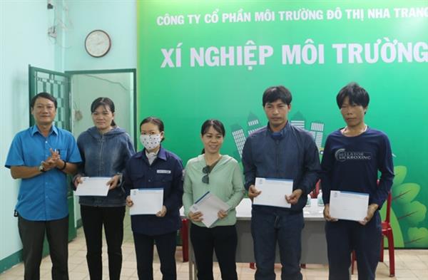Tại buổi đến thăm, LĐLĐ TP đã hỗ trợ 16 suất quà (mỗi suất 500.000đ) cho đoàn viên, lao động Công ty CP Môi trường Đô thị Nha Trang và Công ty CP In & Thương mại Khánh Hòa.