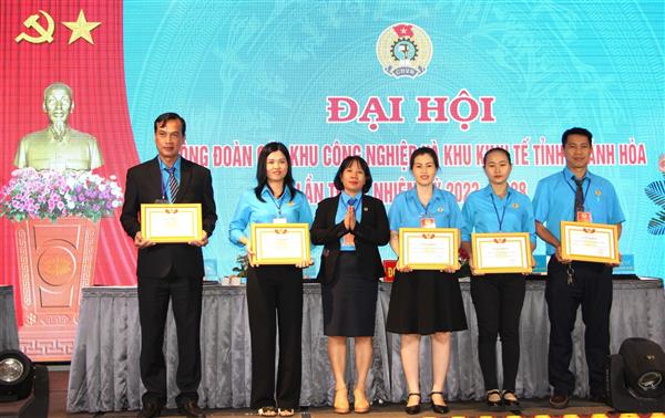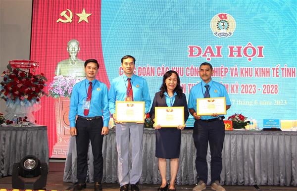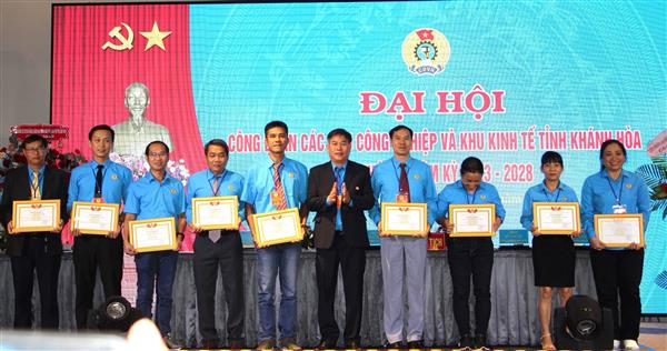Nhân dịp này, LĐLĐ tỉnh Khánh Hòa tặng bằng khen cho 3 tập thể 7 cá nhân và Công đoàn KCN-KKT tặng giấy khen cho 5 tập thể và 10 cá nhân đã có thành tích xuất sắc trong công tác công đoàn nhiệm kỳ 2018-2023.