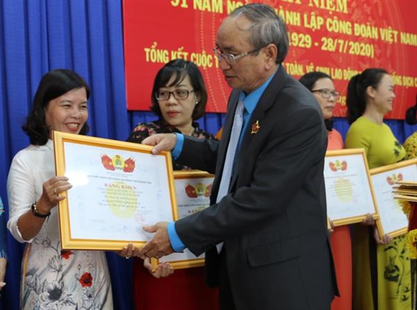 Bên cạnh đó, LĐLĐ tỉnh tổ chức tổng kết và trao giải Cuộc thi trực tuyến tìm hiểu An toàn vệ sinh lao động và phòng chống dịch Covid – 19 với 38 giải, khen thưởng 4 tập thể xuất sắc. 2 giải Nhất thuộc về đoàn viên Nguyễn Thiên Hoa và đoàn viên Lê Quốc Nhã - Công đoàn cơ sở Công ty Cổ phần Công nghệ sinh phẩm Nam Việt.