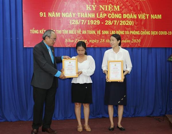 Sáng 28/7/2020, LĐLĐ Khánh Hòa tổ chức Lễ kỷ niệm 91 năm ngày thành lập Công đoàn Việt Nam (28/7/1929 – 28/7/2020), tổng kết cuộc thi trực tuyến tìm hiểu An toàn vệ sinh lao động và phòng chống dịch Covid – 19.