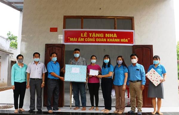 “Mái ấm Công đoàn – Công đoàn là mái ấm” chính là cảm nghĩ của mỗi đoàn viên khi được nhận hỗ trợ kinh phí xây nhà từ Chương trình Mái ấm Công đoàn Khánh Hòa, trong những năm qua Ban quản lý Quỹ xã hội Công đoàn (CĐ) tỉnh Khánh Hòa luôn kịp thời hỗ trợ đoàn viên CĐ khó khăn về nhà ở. 6 tháng đầu năm 2021, mặc dù tình hình dịch bệnh Covid -19 luôn diễn biến phức tạp, nhưng đoàn công tác Ban quản lý Quỹ đã kịp thời trực tiếp khảo sát 22 trường hợp và trao tặng 10 nhà mái ấm CĐ cho gia đình đoàn viên (trong đó 8 nhà xây mới và 2 nhà sửa chữa) với tổng kinh phí hỗ trợ 450 triệu đồng, tạo thêm động lực không những về tinh thần mà cả vật chất giúp đoàn viên an cư lạc nghiệp, an tâm công tác.