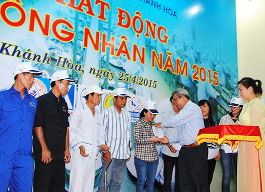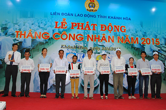 Nhân dịp này, UBND tỉnh tặng bằng khen cho 5 tập thể và Liên đoàn Lao động tỉnh tặng bằng khen cho 9 tập thể có nhiều hoạt động chăm lo đời sống cho công nhân. Đồng thời, Liên đoàn Lao động tỉnh trao 40 suất quà cho những công nihân bị tai nạn lao động, bệnh nghề nghiệp, mỗi suất 500.000 đồng; trích 360 triệu đồng hỗ trợ xây nhà mái ấm cho 10 gia đình công nhân nghèo; Quỹ tấm lòng vàng người lao động trao 5 máy ICOM cho 5 ngư dân khó khăn với tổng trị giá hơn 100 triệu đồng; Quỹ xã hội từ thiện tấm lòng vàng Báo Lao Động trao 20 triệu đồng cho 2 gia đình cán bộ chiến sĩ Trường Sa có con bị bệnh hiểm nghèo.