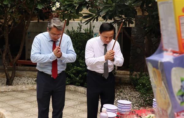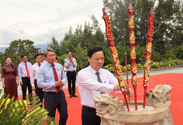 Phó Chủ tịch Quốc hội Nguyễn Khắc Định (bên phải) và Bí thư Tỉnh ủy Khánh Hòa Nguyễn Hải Ninh dâng hương tại khu mộ gió.