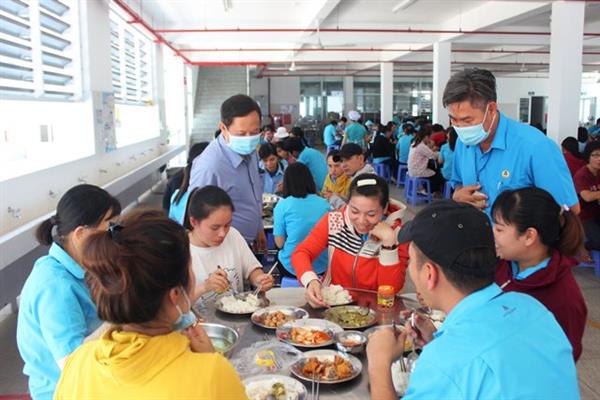 Giờ ăn ca của công nhân Công ty FLD được điều chỉnh khoảng cách và nâng cao chất lượng suất ăn