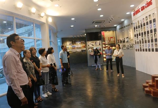 Đoàn tham quan khu vực trưng bày kỷ vật 64 liệt sĩ