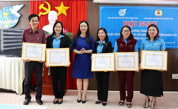 Tại Hội nghị, LĐLĐ tỉnh và Hội LHPN tỉnh đã trao tặng Bằng khen cho 10 tập thể và 10 cá nhân đã có thành tích xuất sắc trong việc thực hiện Chương trình phối hợp giai đoạn 2017 – 2019.