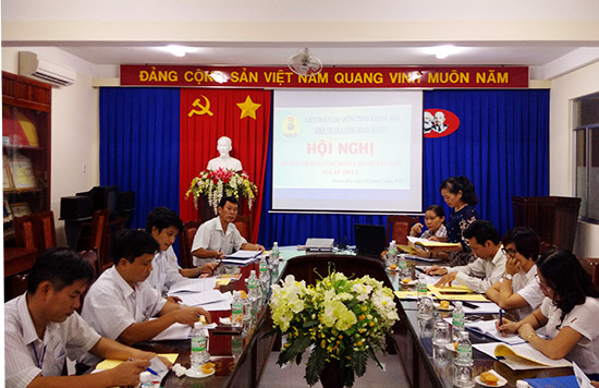 Chiều ngày 7-7, Khối thi đua Công đoàn ngành I đã tổ chức hội nghị sơ kết công tác công đoàn 6 tháng đầu năm và xây dựng, phương hướng nhiệm vụ 6 tháng cuối năm 2015. Các đồng chí Lê Xuân Hải - Phó Chủ tịch LĐLĐ tỉnh, Võ Thị Ngọc Hà - Chủ tịch công đoàn Viên chức tỉnh, Trưởng Khối thi đua chủ trì hội nghị.