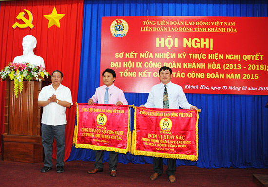 Ngày 3-3, Liên đoàn Lao động tỉnh tổ chức hội nghị sơ kết nửa nhiệm kỳ thực hiện Nghị quyết Đại hội IX Công đoàn Khánh Hòa (2013-2018) và tổng kết công tác năm 2015. Các đồng chí: Trần Văn Lý - Phó Chủ tịch Tổng Liên đoàn Lao động Việt Nam, Tạ Quang Đồng – UVĐCT, Chủ nhiệm UBKT Tổng LĐ, Trần Mạnh Dũng – Trưởng ban Dân vận Tỉnh uỷ đến dự.