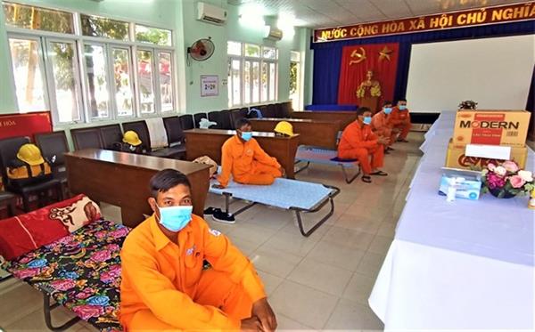 Tại Công ty CP điện lực Khánh Hòa với hơn 1.000 lao động để đảm bảo an toàn từ 1.4 các đơn vị điện lực, xí nghiệp toàn công ty tạm dừng thi công công trình, bố trí nghỉ phép, thực hiện làm việc từ xa. Lãnh đạo DN cho biết, việc phân công làm việc tại nhà luân phiên, có dự phòng những trường hợp phải cách ly theo yêu cầu của chính quyền địa phương. Đặc biệt, để công tác cung cấp điện được ổn định và liên tục trong thời gian 15 ngày cao điểm cách ly xã hội đội ngũ CBCNV điều độ tại các đơn thực hiện trực ca hoàn toàn cách ly. Trong thời gian trực ca cũng như nghỉ ca, các điều độ viên hoàn toàn làm việc, sinh hoạt, nghỉ ngơi tại khu vực riêng, sử dụng lối đi riêng đã được phân luồng. CBCN ăn, nghỉ, sinh hoạt được chuẩn bị đầy đủ, đảm bảo sức khỏe, điều kiện vệ sinh phòng chống dịch bệnh.