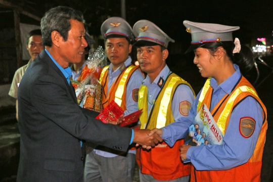 Đồng chí Lê Xuân Hải cũng đã đến thăm và tặng quà gác chắn Mã vòng thuộc Công ty CP quản lý Đường sắt Phú Khánh. Đồng chí tận tình thăm hỏi, động viên công nhân trực gác chắn. Vì đây là một trong những gác chắn trung tâm nên số lượt tàu đi và đến liên tục, cứ 10 phút công nhân lại đón 1 chuyến tàu. Lương bình quân của một công nhân trên 4 triệu đồng. Tại đây, lãnh đạo LĐLĐ tỉnh chúc đoàn viên công đoàn, CNLĐ và gia đình năm mới nhiều sức khỏe, an khang và lì xì mừng tuổi 12 cán bộ, công nhân lao động gác chắn Mã vòng.