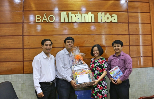 Đ/c Bùi Thanh Bình - Phó Chủ tịch LĐLĐ tỉnh (bên trái) thăm và chúc Tết Báo Khánh Hòa
