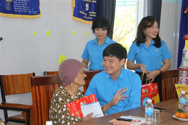 Tại điểm thăm, đồng chí Bùi Hoài Nam – Chủ tịch LĐLĐ tỉnh chia sẻ những nỗ lực của trung tâm trong thời gian qua luôn quan tâm, chăm lo đời sống vật chất cho các gia đình chính sách, người có công. Đồng chí cũng đã ân cần thăm hỏi, động viên 04 cụ dưỡng lão viên đang điều dưỡng tại Trung Tâm.