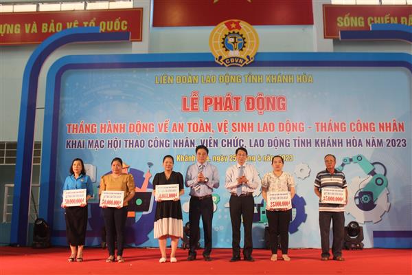 Nhân dịp này, UBND tỉnh trao khen thưởng 5 tập thể, 5 cá nhân có thành tích tiêu biểu thực hiện tốt An toàn, vệ sinh lao động năm 2022; LĐLĐ tỉnh trao tặng 5 nhà mái ấm Công đoàn cho gia đình đoàn viên Công đoàn, trong đó 3 nhà xây mới và 2 nhà sửa chữa với tổng số tiền 200 triệu đồng.