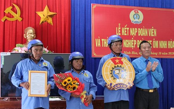 Ngày 8.10, LĐLĐ thị xã Ninh Hòa tổ chức lễ kết nạp đoàn viên và thành lập nghiệp đoàn xe ôm Ninh Hòa. Tham dự có đại diện LĐLĐ tỉnh, ông Tống Trân- bí thư thị ủy Ninh Hòa và đông đảo lái xe ôm.