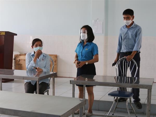 Đồng hành cùng công nhân lao động, những ngày qua các cán bộ công đoàn KKT-KCN Khánh Hòa cũng đang tất bật hỗ trợ các CĐCS kiểm tra sức khỏe cho công nhân, hoàn thiện dần việc bố trí “3 tại chỗ”, “một cung đường hai địa điểm”. Đồng chí Huỳnh Thị Nam Khánh - Chủ tịch Công đoàn các Khu công nghiệp và Khu Kinh tế tỉnh chia sẻ: “Nhiều ngày qua gần như anh em công đoàn ở lại nơi làm việc. Không chỉ hỗ trợ DN hoàn thiện phương án bố trí nơi ăn ở đảm bảo cho công nhân, CĐ Khu còn phối hợp với các đoàn liên ngành, ban chấp hành CĐCS trực tiếp, gián tiếp làm công tác tư tưởng để CNLĐ yên tâm ở lại nhà máy, chung tay phòng chống dịch. Cùng với CĐCS sát sao để cùng với lãnh đạo DN xây dựng phương án thực hiện các chế độ chính sách đối cho người lao động trong hình hình dịch bệnh; theo dõi danh sách CNLĐ làm việc tại DN để phục vụ công tác truy vết phòng chống dịch...”