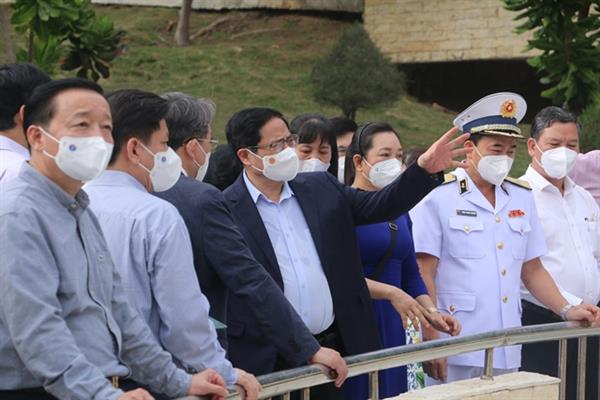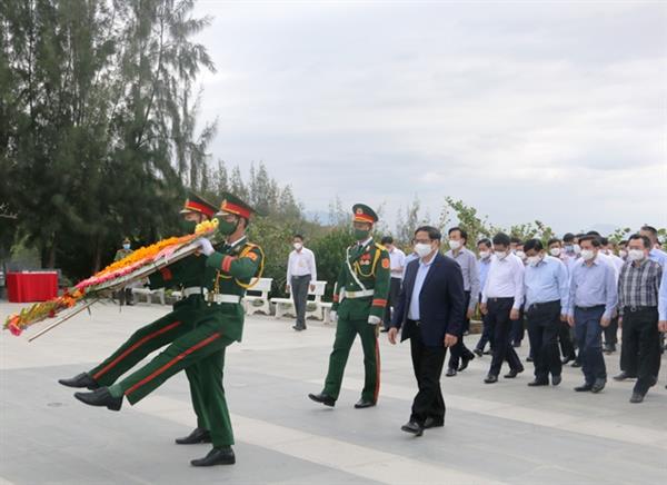 Tại buổi lễ, đồng chí Phạm Minh Chính - Thủ tướng cùng đoàn công tác đã dâng hương, dâng hoa tưởng niệm 64 anh hùng, liệt sĩ đã anh dũng hy sinh bảo vệ chủ quyền biển đảo Tổ quốc nhân dịp kỷ niệm 34 năm ngày 64 chiến sĩ Hải quân Nhân dân Việt Nam hy sinh tại Gạc Ma (14/3/1988-14/3/2022). Thủ tướng cùng các Bộ trưởng đã dâng hương tại khu mộ gió và tham quan quảng trường Hòa Bình.