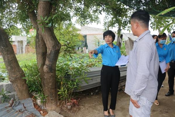 Đ/c Trần Thị Hương - Trưởng Ban CSPL và QHLĐ LĐLĐ tỉnh khảo sát đất đoàn viên (huyện Vạn Ninh)