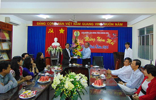 Sáng 15-2 (mùng 8 Tết), đoàn Lãnh đạo Tỉnh uỷ Khánh Hòa do đồng chí Nguyễn Tấn Tuân, Phó bí thư TT Tỉnh uỷ, Trưởng Đoàn đại biểu Quốc hội tỉnh dẫn đầu đến thăm, gặp mặt, chúc Tết đầu năm Liên đoàn Lao động tỉnh.