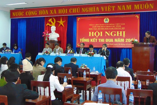 Ngày 30-12, tại tỉnh Quảng Ngãi, Cụm thi đua Liên đoàn Lao động các tỉnh khu vực duyên hải Nam Trung Bộ đã tổ chức hội nghị tổng kết thi đua năm 2016. Liên đoàn Lao động Khánh Hòa dẫn đầu khối thi đua được đề nghị tặng Cờ thi đua của Chính phủ.