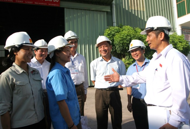 Đ/c Đặng Ngọc Tùng - Chủ tịch Tổng LĐLĐ VN đang trao đổi với CNLĐ