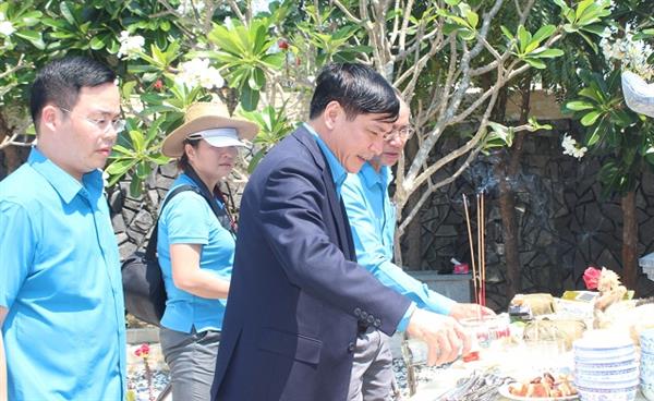 Đồng chí Bùi Văn Cường cùng đoàn công tác thắp hương tưởng niệm 64 liệt sĩ Gạc Ma.