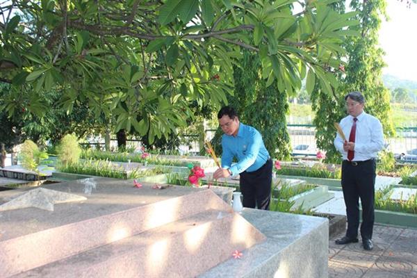 Lãnh đạo Tổng LĐLĐ Việt Nam và Tỉnh ủy Khánh Hòa thắp nén hương bên mộ các liệt sĩ