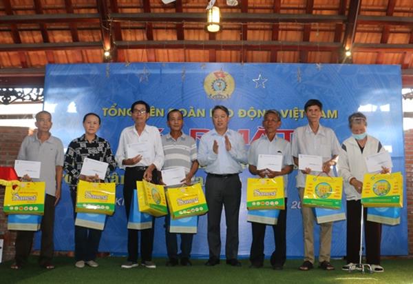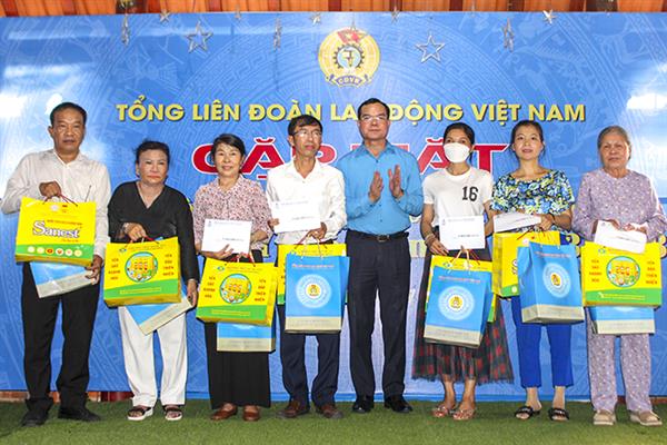 Nằm trong chuỗi các hoạt động, đồng chí Nguyễn Đình Khang – Chủ tịch Tổng LĐLĐ Việt Nam đã đến thăm 2 gia đình ông Huỳnh Trướng là thương binh ¾, cựu cán bộ Công đoàn (phường Xương Huân) và cụ Lê Thị Kim Chung là mẹ liệt sĩ, cựu cán bộ Công đoàn (phường Phước Tân) và tặng mỗi gia đình một suất quà trị giá 5 triệu đồng và quà tặng.