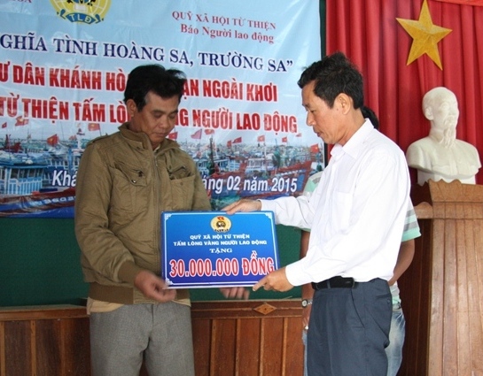 Ngày 9-2, tại xã Ninh Diêm, huyện Ninh Hòa tỉnh Khánh Hòa, Liên đoàn Lao động tỉnh Khánh Hòa và Công đoàn ngành Nông nghiệp và Phát triển Nông thôn tỉnh Khánh Hòa tổ chức trao 140 triệu đồng hỗ trợ 3 chủ tàu bị chìm, 11 gia đình thuyền viên mất tích và đang bị nước ngoài bắt giữ khi đánh cá. Toàn bộ số tiền này được trích từ Qũy tấm lòng vàng Người lao động do công nhân lao động cả nước đóng góp.