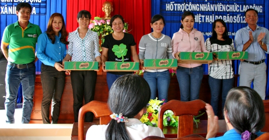 Trước đó, 500 thùng nước và sữa của Nestle cũng đã được trao cho 500 CNLĐ bị thiệt hại trong bão 12 tại H.Vạn Ninh.