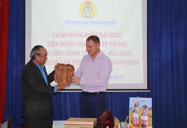 Công tác đối ngoại là một nhiệm vụ trọng tâm của Công đoàn, nhằm học hỏi phương pháp hoạt động chăm lo, bảo vệ cho đoàn viên và người lao động, Liên đoàn Lao động tỉnh Khánh Hòa đã có buổi tiếp đón và trao đổi kinh nghiệm hoạt động Công đoàn cùng đoàn công tác LĐLĐ TP. Hà Nội và Liên hiệp Công đoàn Belarus do Ông Shchakovich Aliaksandr Vladimirovich - Phó Chủ tịch Liên hiệp Công đoàn thành phố Minsk (CH Belarus) làm Trưởng đoàn.