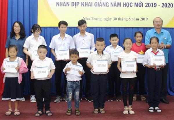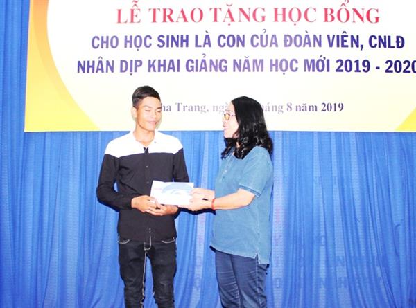 Tại buổi lễ, 2 đơn vị đã trao 15 suất học bổng trị giá 1 triệu đồng/suất cho 15 học sinh là con đoàn viên công đoàn thuộc huyện: Khánh Vĩnh, Khánh Sơn, Vạn Ninh, Công đoàn ngành Công thương, Công đoàn ngành Xây dựng; trao tiền lãi tiết kiệm cho 2 em học sinh là con công nhân bị tai nạn lao động, mỗi suất trị giá 500.000 đồng. Bên cạnh đó, mỗi em học sinh còn được nhận 20 cuốn vở. Tổng trị giá của đợt trao học bổng gần 17 triệu đồng.
