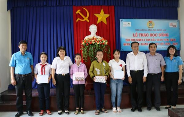 Nhân dịp bước vào năm học mới 2020-2021, nhằm tiếp sức cho các em đến trường, sáng 26/8/2020, LĐLĐ tỉnh đã tổ chức trao học bổng cho 4 học sinh là con đoàn viên công đoàn, NLĐ thuộc LĐLĐ huyện Diên Khánh, mỗi suất 1 triệu đồng.