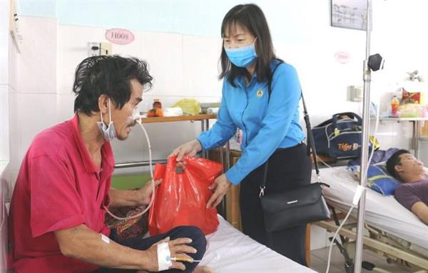 Ngày 4-2, Liên đoàn Lao động tỉnh phối hợp với Quỹ Xã hội từ thiện Tấm lòng vàng tổ chức 415 suất quà Tết cho bệnh nhân có hoàn cảnh khó khăn đang điều trị bệnh tại: Bệnh viện Đa khoa tỉnh (200 suất), Bệnh viện Da liễu tỉnh (100 suất), Bệnh viên Chuyên khoa tâm thần tỉnh (115 suất).