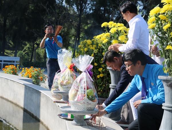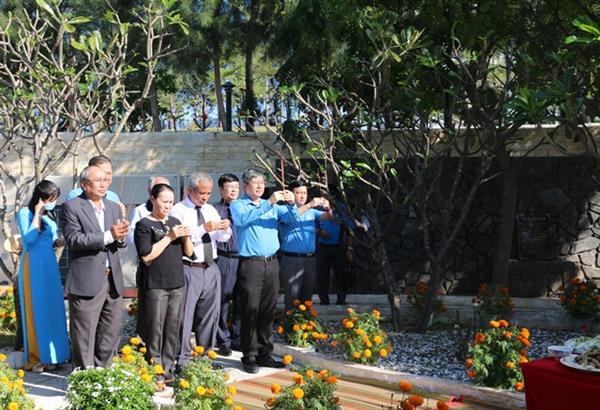 Đ/c Bùi Thanh Bình - Chủ tịch LĐLĐ tỉnh thắp nén hương tri ân 64 liệt sĩ Gạc Ma