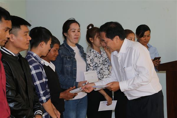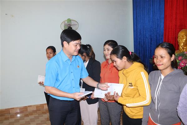 Đ/c Bùi Hoài Nam - Chủ tịch LĐLĐ tỉnh trao quà cho đoàn viên khó khăn