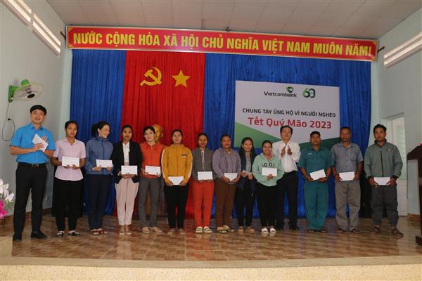 Dịp này, Vietcombank Nha Trang trao 50 suất quà cho người lao động miền núi có hoàn cảnh khó khăn, mỗi suất quà trị giá 500.000 đồng.