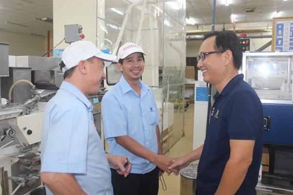 Đại diện lãnh đạo Nhà máy thuốc lá Khatoco thăm hỏi, động viên người lao động
