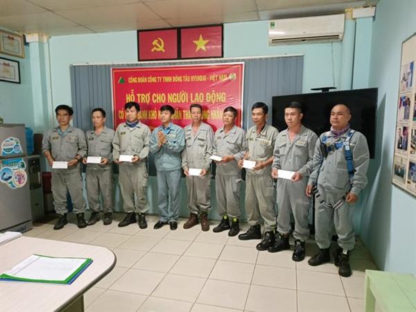 Mới đây, Công đoàn Công ty TNHH Đóng tàu Hyundai Việt Nam (HVS) đã tổ chức gặp mặt, thăm hỏi và tặng quà cho 30 trường hợp NLĐ có hoàn cảnh khó khăn, ốm đau, tai nạn lao động với mỗi suất quà trị giá 500.000, tổng số tiền thăm hỏi là 15 triệu đồng.