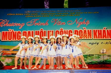 Nhiều tiết mục như: “Khánh Hòa chào mừng ngày mới”, “Trên công trường rộn tiếng ca” của Đoàn ca múa Hải Đăng; “Biển Đông niềm tin Tổ quốc”; “Cháu hát về đảo xa”, “Công nhân ca” của trường CĐ VHNT và DL đã để lại những giây phút lắng đọng trong lòng người nghe, đằm thắm tình cảm của CNVCLĐ. Có thể nói các đơn vị về tham gia chương trình văn nghệ chào mừng Đại hội IX Công đoàn Khánh Hòa đã có sự chuẩn bị chu đáo, các tiết mục được dàn dựng công phu, trang phục đẹp, phong cách biểu diễn ấn tượng.