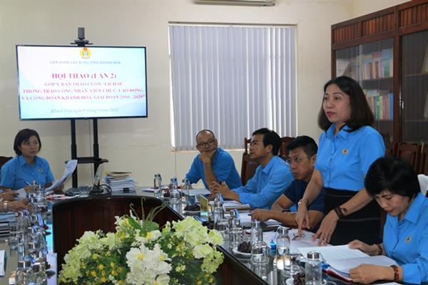 Tại hội thảo, các đại biểu đã tham gia góp ý với gần 20 ý kiến, đa số ý kiến thống nhất về bố cục các chương, kết cấu của cuốn sách, bên cạnh đó cần bổ sung trang các thành tích nổi bật của Công đoàn Khánh Hòa, thời điểm chuyển giao các Công đoàn ngành, các mốc thời gian của các Chương trình và Nghị quyết Đại hội Công đoàn Khánh Hòa; rà soát các chức danh chính xác của Ban Chấp hành các nhiệm kỳ, bổ sung các phong trào thi đua yêu nước và các điển hình tiêu biểu của Công đoàn …