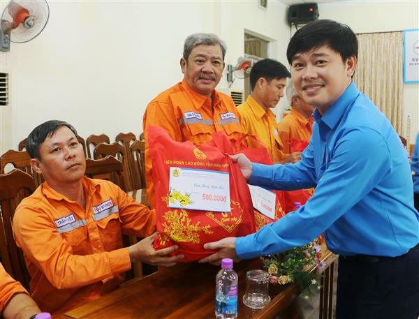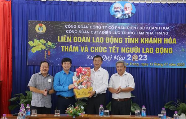 Trước thềm năm mới Xuân Quý Mão 2023, Chủ tịch LĐLĐ tỉnh Bùi Hoài Nam đã gửi lời chúc mừng toàn thể lãnh đạo đơn vị, anh chị em công nhân năm mới bình an, hạnh phúc và thật nhiều sức khỏe. Chủ tịch đã trao tận tay 20 suất quà cho đoàn viên, NLĐ ngành điện với mỗi suất quà trị giá 800.000 đồng (gồm tiền mặt và hiện vật) và các phần quà tết đến lãnh đạo Trung tâm Điện lực Nha Trang, Công ty Yến Sào Khánh Hòa, huyện Trường Sa với mỗi suất quà 1 triệu đồng.