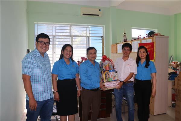 Đ/c Bùi Đăng Thành - Phó Chủ tịch Thường trực LĐLĐ tỉnh tặng quà cho Báo Khánh Hòa