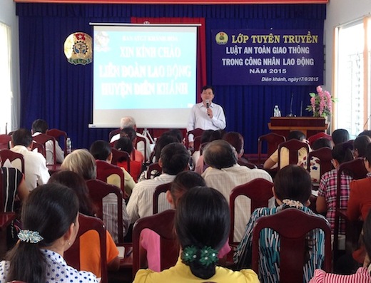 Trong tháng 9, Liên đoàn Lao động tỉnh phối hợp cùng Ban An toàn giao thông tỉnh Khánh Hoà tổ chức 03 lớp tập huấn nâng cao kiến thức an toàn giao thông năm 2015 cho 240 công nhân lao động các doanh nghiệp thuộc LĐLĐ huyện Diên Khánh, CĐ Văn hoá-Thể thao-Du lịch tỉnh và CĐ ngành Công thương tỉnh Khánh Hoà.